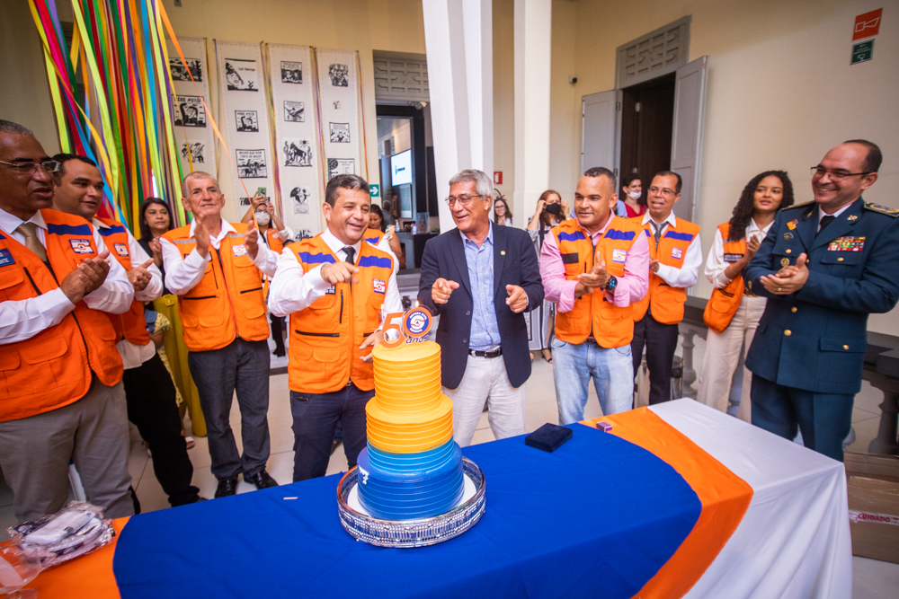 Meio século de existência e uma longa trajetória de prestação de serviços humanitários e de qualidade para os cidadãos sergipanos. A celebração do cinquentenário da Defesa Civil de Sergipe aconteceu na manhã desta quinta-feira, 17, no Museu da Gente Sergipana, e reuniu diversas autoridades para celebrar a data, com objetivo de homenagear e destacar as atividades desenvolvidas pela Superintendência Estadual de Proteção e Defesa Civil (Supdec).