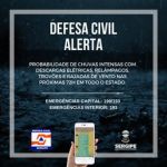 Defesa Civil Estadual alerta para chuvas e descargas elétricas nas próximas 72 horas