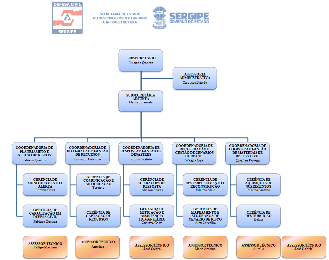 O Órgão Central Estadual de Defesa Civil é denominado Subsecretaria Estadual de Proteção e Defesa Civil de Sergipe (SPDEC), conforme Lei 7.416 de 03 de julho de 2012,definido em ato do Poder Executivo Estadual por meio da Lei Nº 8.684, de 19 de junho de 2020, que institui a Política e o Sistema estadual de Proteção e Defesa Civil, estruturado com a finalidade de coordenar o referido sistema e terá o seguinte organograma: