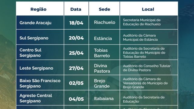 Em Riachuelo, o Coged será realizado na sede da Secretaria Municipal da Educação, a partir das 7h30. “Ainda esta semana, mais precisamente dia 20, levaremos o curso para o sul Sergipano. A cidade sede será Estância e o local o auditório da Câmara de Vereadores”, informou o superintendente especial de Proteção e Defesa Civil, tenente-coronel Luciano Queiroz.