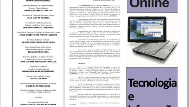Na última quarta-feira, 30, o Governo do Estado declarou situação de emergência nos municípios de Tobias Barreto e Itabaianinha nos Territórios Sul e Centro Sul de Sergipe, devido aos estragos causados pelas fortes chuvas desta semana, conforme a Portaria n° 260, de 02 de fevereiro de 2022, do Ministério do Desenvolvimento Regional – MDR.