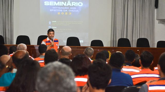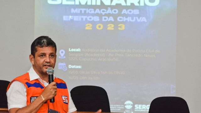 ‘Prognósticos meteorológicos para a quadra chuvosa de 2023’; ‘O que fazer em uma situação de desastre?’; ‘Instruções práticas de preenchimento na plataforma S2iD com desastre hipotético’, foram alguns dos temas abordados no primeiro dia do seminário ‘Mitigação aos Efeitos das Chuvas 2023?, realizado pelo Governo de Sergipe, por meio da Secretaria de Estado do Desenvolvimento Urbano e Sustentabilidade (Sedurbi) e da Superintendência Especial de Proteção e Defesa Civil (Supdec), no auditório da Academia de Polícia Sergipana (Acadepol).